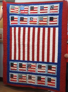 If you want to be involved but do not have time/skill to quilt, make a quilt top. Any size works. Please include the backing (at least 2-4 inches larger on all 4 sides of quilt tops. You may also specify your special charity. We are trying to focus on the charities within the counties of our members: Bryan, Fannin and Grayson but are open to other suggestions. As a member of our guild, feel free to sponsor/lead a specific quilt drive etc. for a special cause. The Community Service Chairperson will be glad to share contact information of our generous long arm quilters who are interested in volunteering their quilting for your cause. This year we have been encouraged to make patriotic quilts for Veterans to give on Veterans Day.